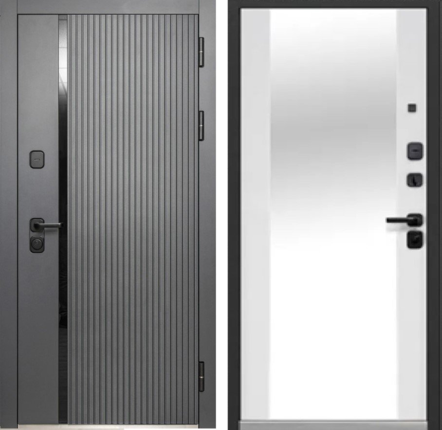 Металл: Порошково-полимерное покрытие, цвет Муар черный с блестками 9005 Отделка снаружи: лист стали + ламинированная МДФ панель 12мм , цвет Антрацит софт + вставка из черного акрила